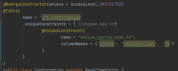 필요한 복합키를 유니크 제약 조건으로 설정했다.