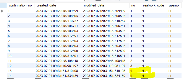 정상적으로 하나의 정보만 insert된 것을 볼 수 있다.