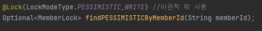 비관적 락의 옵션도 다양하지만 대표적인 PESSIMISTIC_WRITE 옵션을 사용하여 테스트를 해보고자 한다.