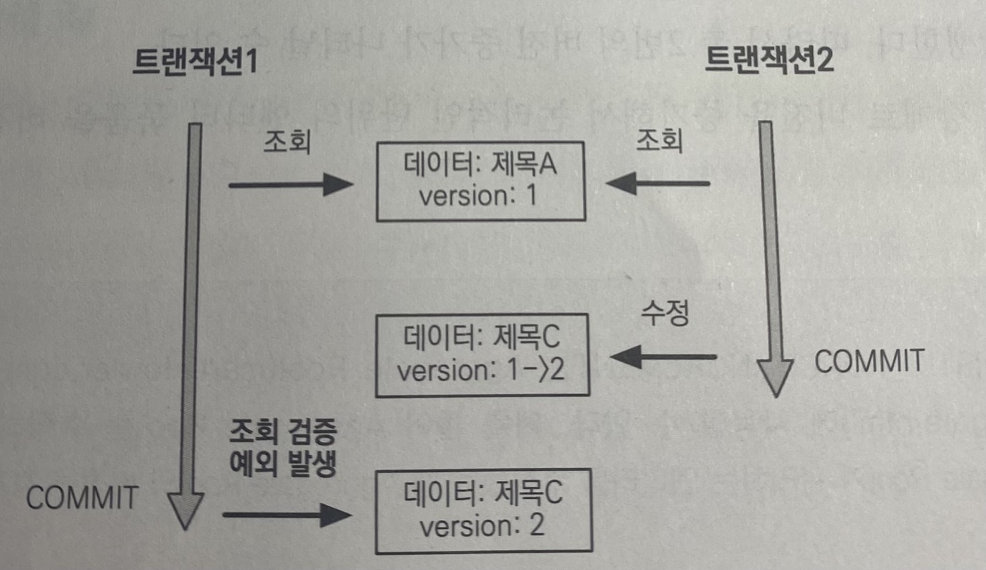 엔티티를 조회할 때 시점의 버전 값과 수정할 때 시점의 버전 값이 다르게 되면 예외를 발생시키게 된다.