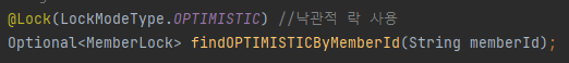 그리고 낙관적 락과 다르게 DB의 락 기능을 사용하기 때문에, 엔티티가 아닌 스칼라 타입을 조회할 때도 사용이 가능하다.