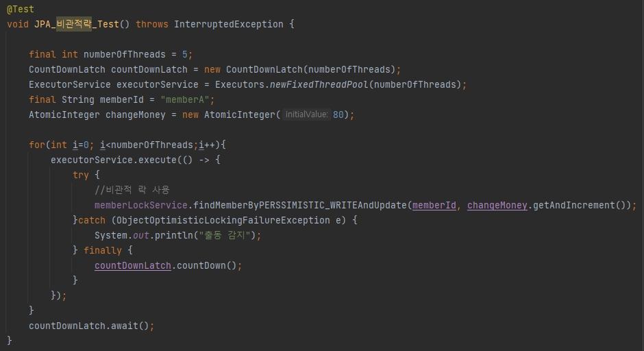 JPA 낙관적 락 사용 테스트