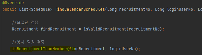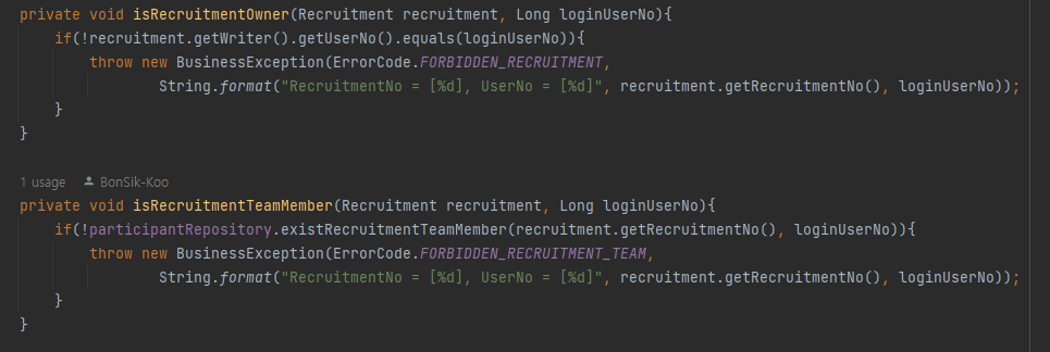 초기에는 아래와 같이 Service layer의 메서드를 통해 검증을 진행했다.