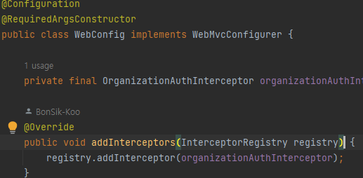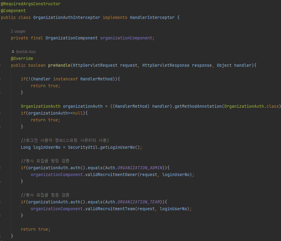 사실 허용/금지 경로를 통해 권한 검증이 필요한 URL를 지정해줄 수 도 있지만, 이 방식을 사용한다면 방장과 팀원을 구분하지 못해 각각의 인터셉터가 필요하게 될 것이다.(사실한 거의 동일한 로직이다.)