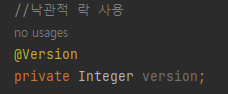 또한, JPA를 통한 낙관적 락을 사용하기 위해 Version 필드도 추가했다.