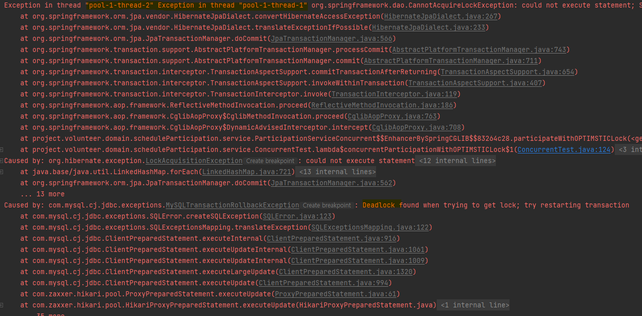 앞서 문제를 다시 설명하자면, 일정 테이블:일정 참가자 테이블=1:N 관계이고 사용자 3명이 동시 신청시 일정 참가자 테이블에 3개의 데이터가 모두 insert 되는 것이다.