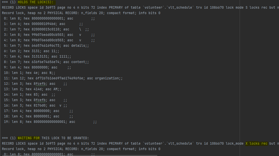 두 트랜잭션 모두 X Lock를 획득하기 위해서 서로가 걸어준 S Lock를 해제할 때까지 기다리기 때문에, 데드락 현상이 발생한 것이다.
